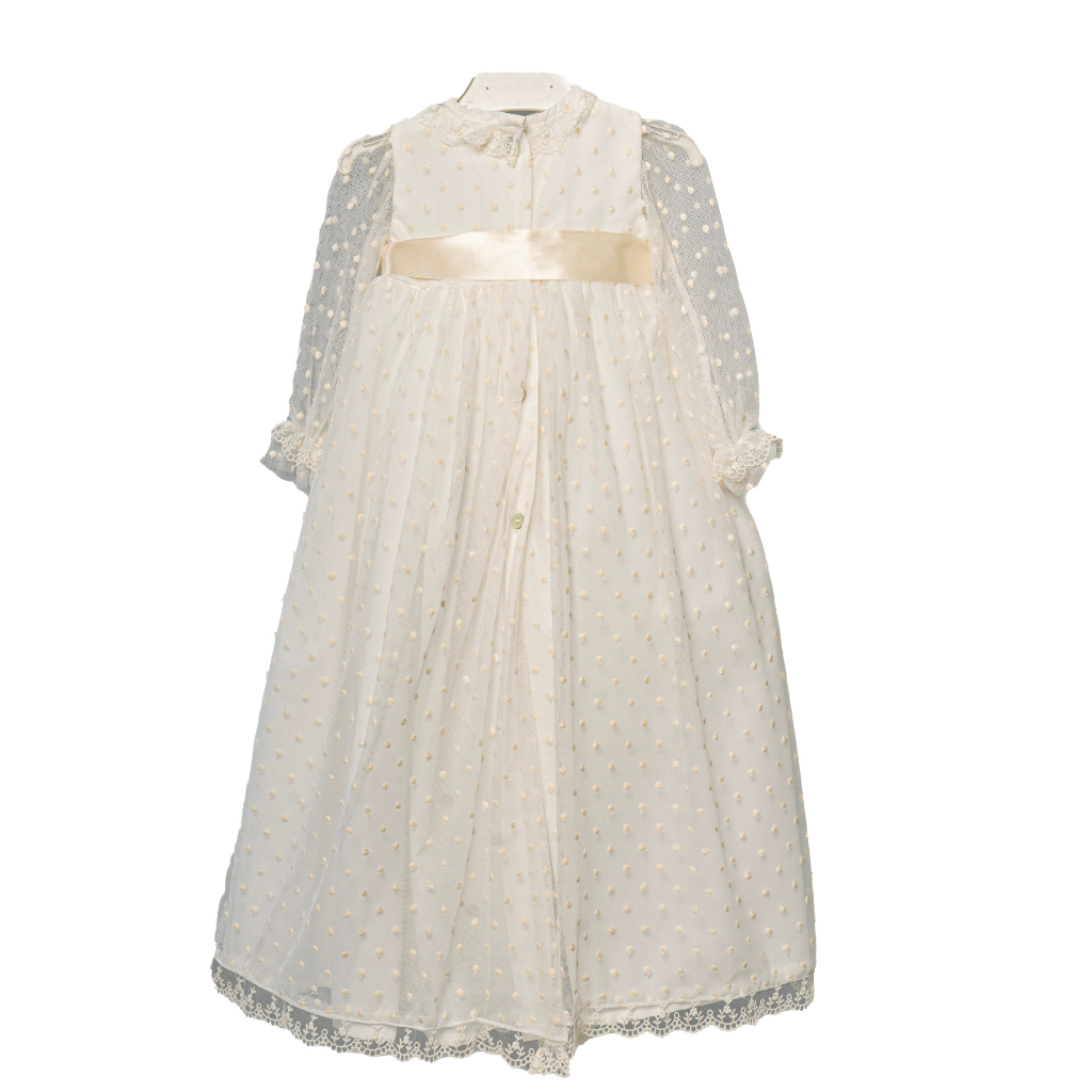This baby christening gown is so beautiful and detailed that it is not an exaggeration to say that it is truly a work of art.
