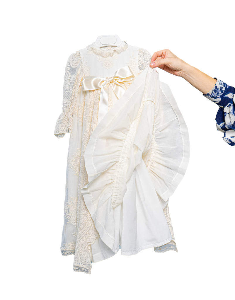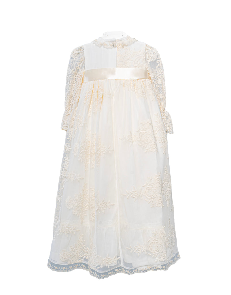 This baby christening gown is so beautiful and detailed that it is not an exaggeration to say that it is truly a work of art.