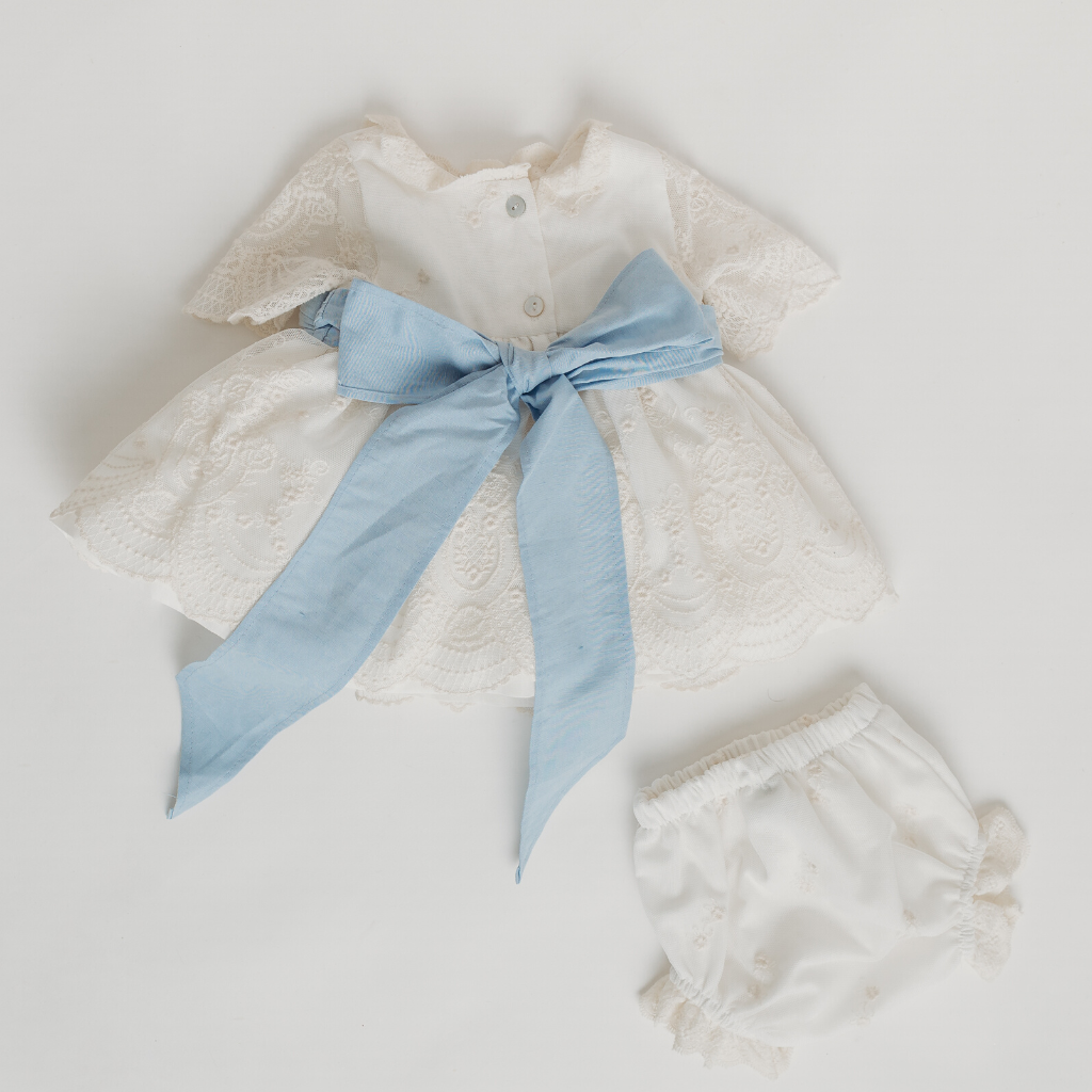 This Manuela embroidery set dress is perfect for a variety of special occasions, including weddings, christenings, and birthday parties. Your baby girl will look adorable and elegant in this beautiful dress.